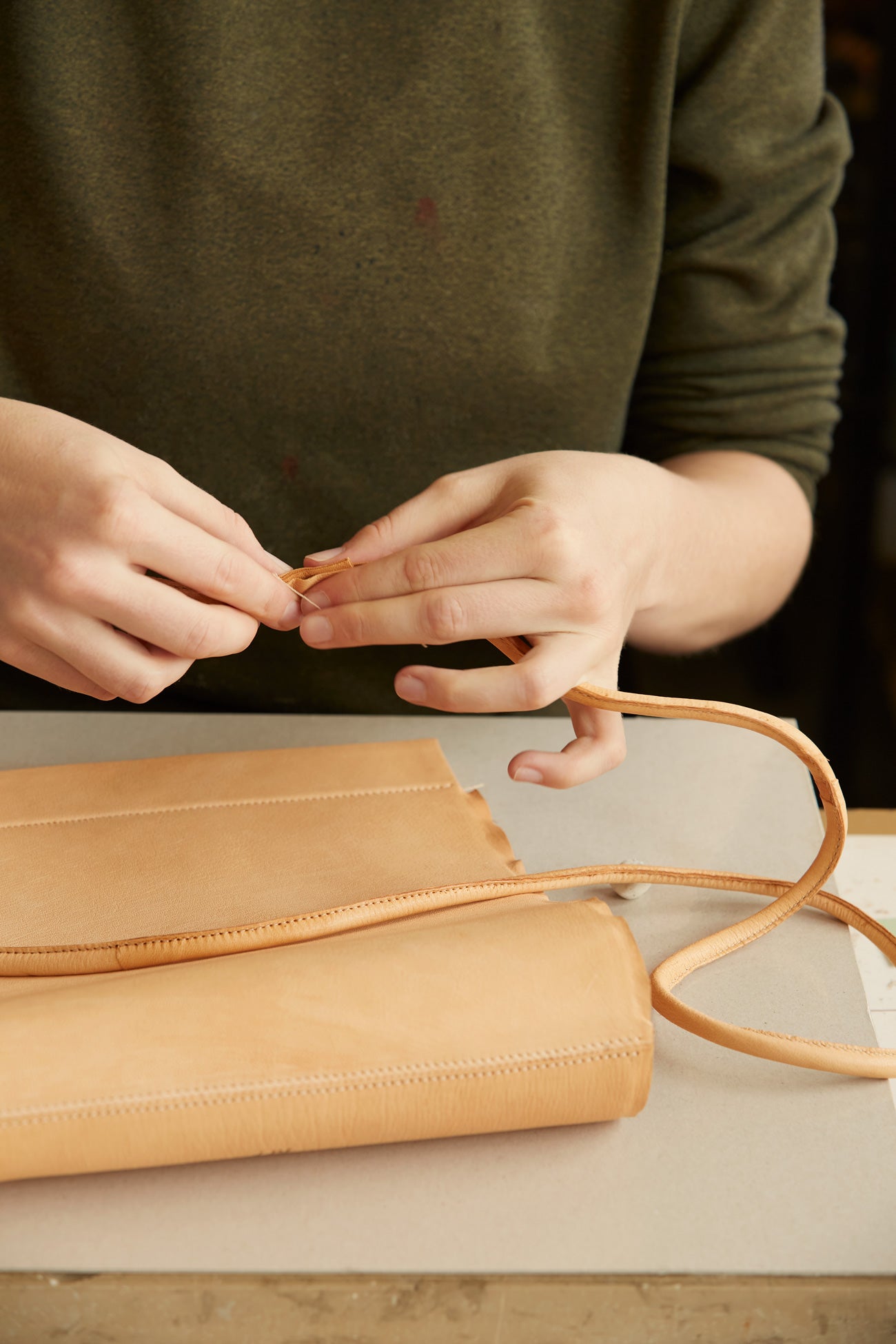 MARAI 的皮革無需頻繁保養,也不需化學用品。讓皮革自然呼吸、隨時間產生專屬光澤。若需護理,可偶爾以蜂蠟皮革膏輕拭,保持柔軟與保護層。